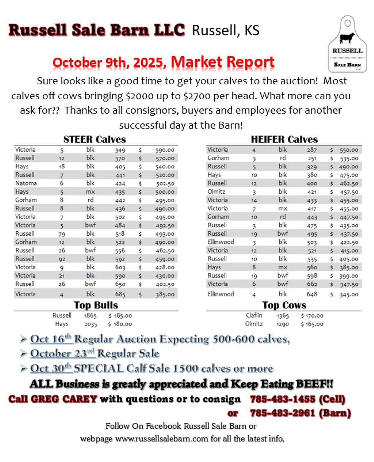 The last 30 days, there seems to be no down in the market. Most all classes remained steady to higher. Seems a little early to sell a grass type calf, but with the moisture they have gained a lot of momentum! Things look very good moving forward, but we must get through this weather storm and get pens cleaned for the next round. Calf market was good, no yearlings represented, below are the cows and bull results. At these prices, don’t waste feed on culls!